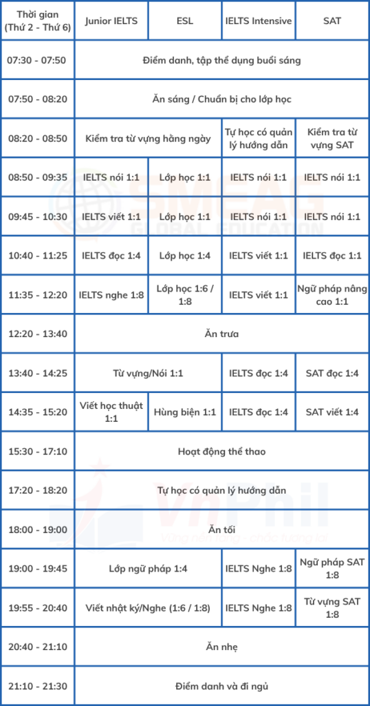 • Lịch học được xây dựng theo thời khóa biểu chuyên sâu từng kỹ năng