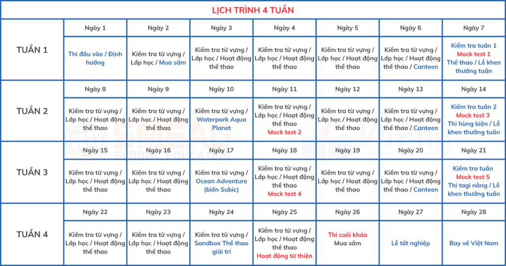 • Lịch trình được điều chỉnh linh hoạt theo từng tuần học và chương trình