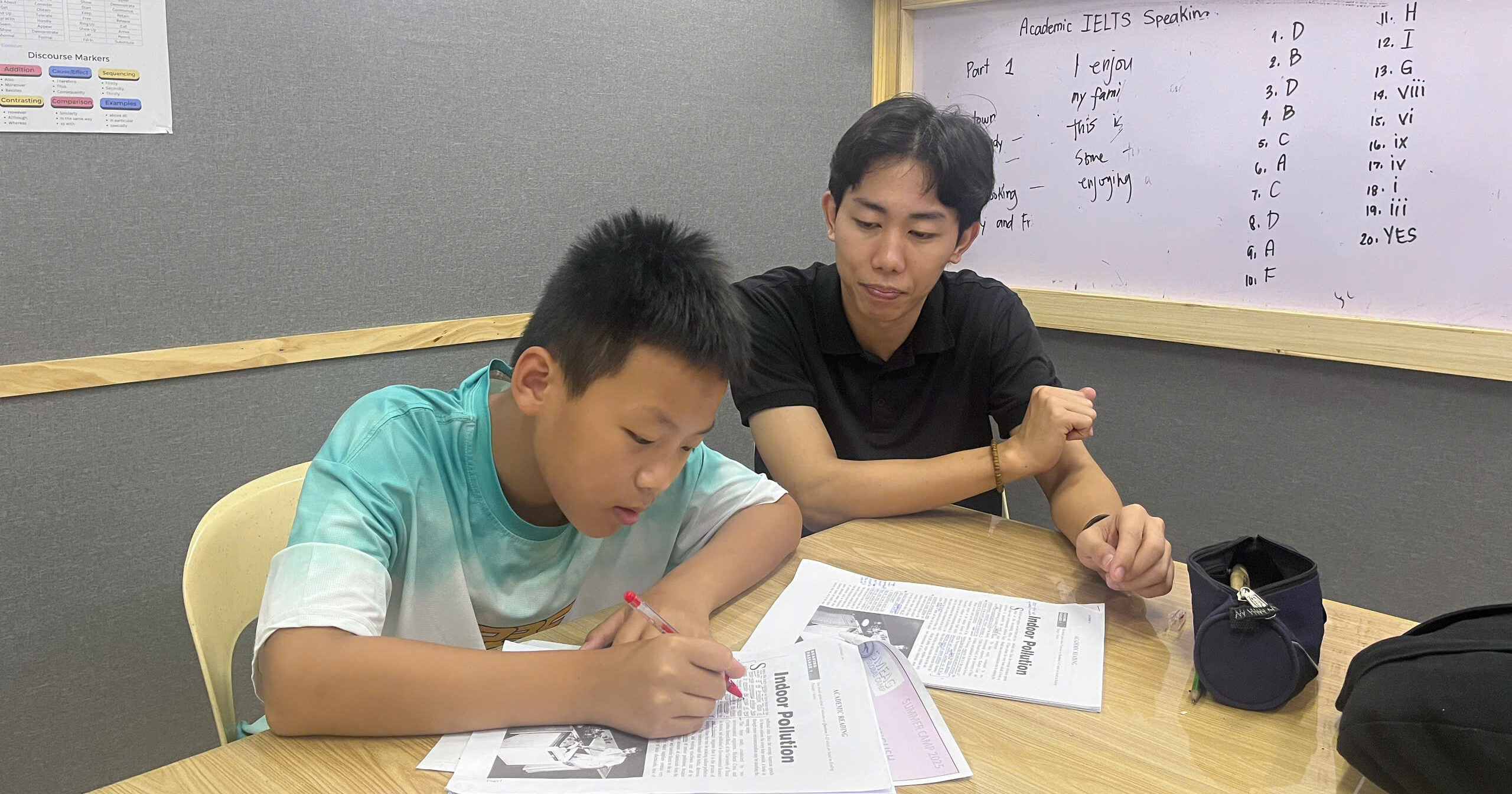 Học sinh được kiểm tra đầu vào theo bốn kỹ năng gồm nghe, nói, đọc, viết và từ vựng, từ đó được xếp lớp phù hợp với trình độ.